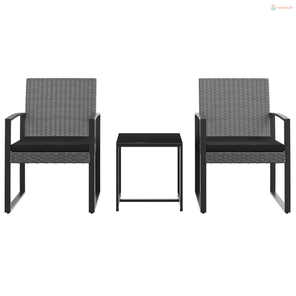 3 részes sötétszürke polyrattan kerti étkezőgarnitúra párnákkal