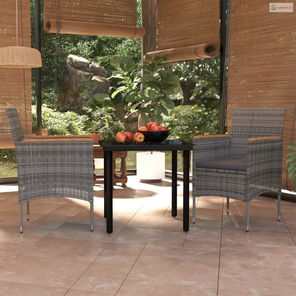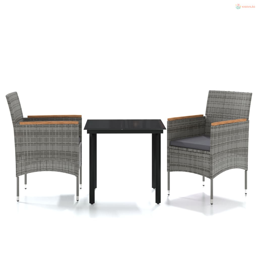 3 részes szürke-fekete kültéri étkezőgarnitúra párnákkal