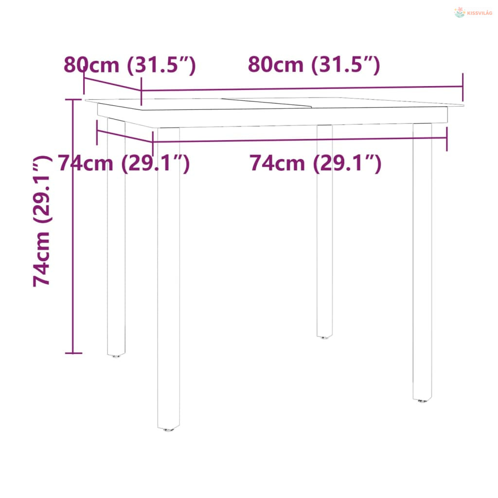 • Asztal mérete: 80 x 80 x 74 cm (Ho x Szé x Ma)