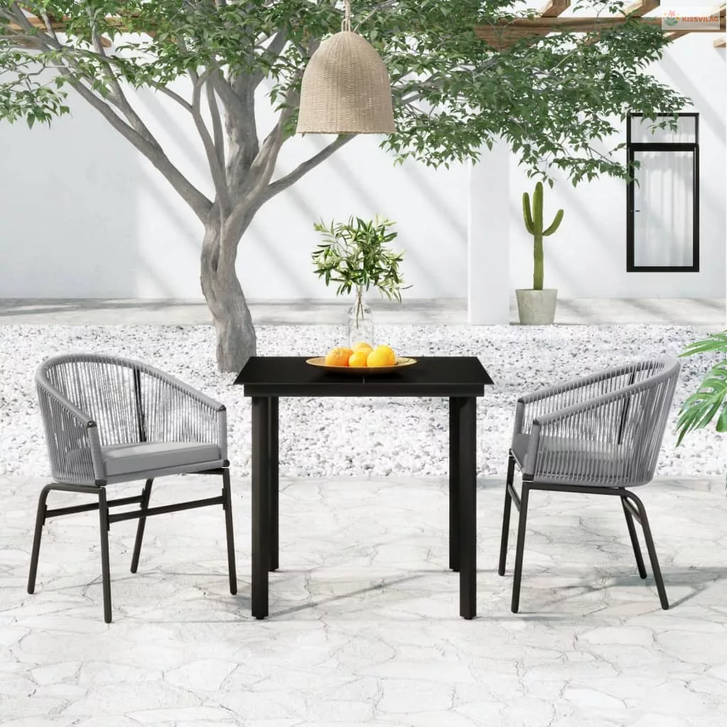 3 részes szürke kerti étkezőgarnitúra
