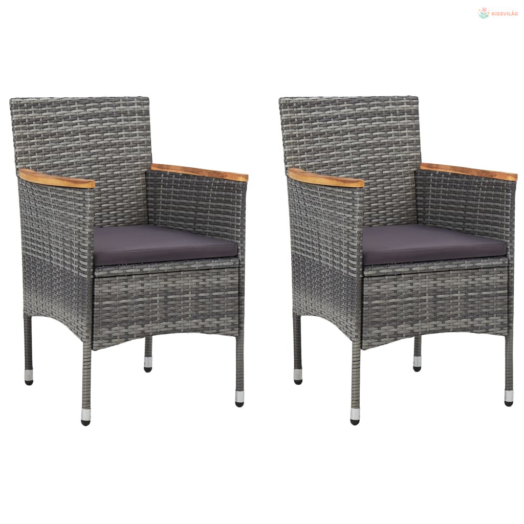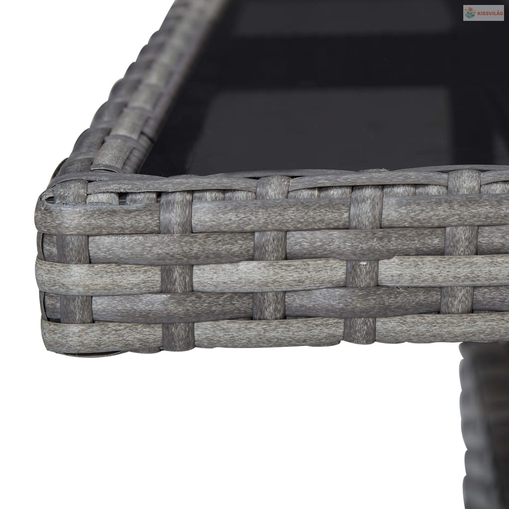 3 részes szürke polyrattan és akácfa kerti étkezőgarnitúra