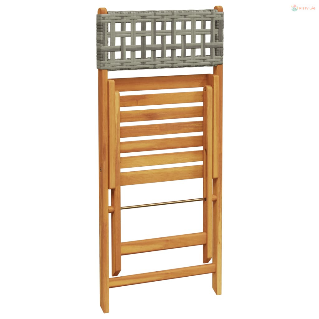 3 részes szürke polyrattan és tömör fa bisztrószett