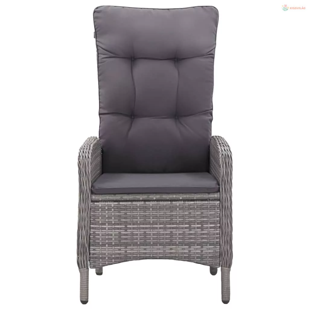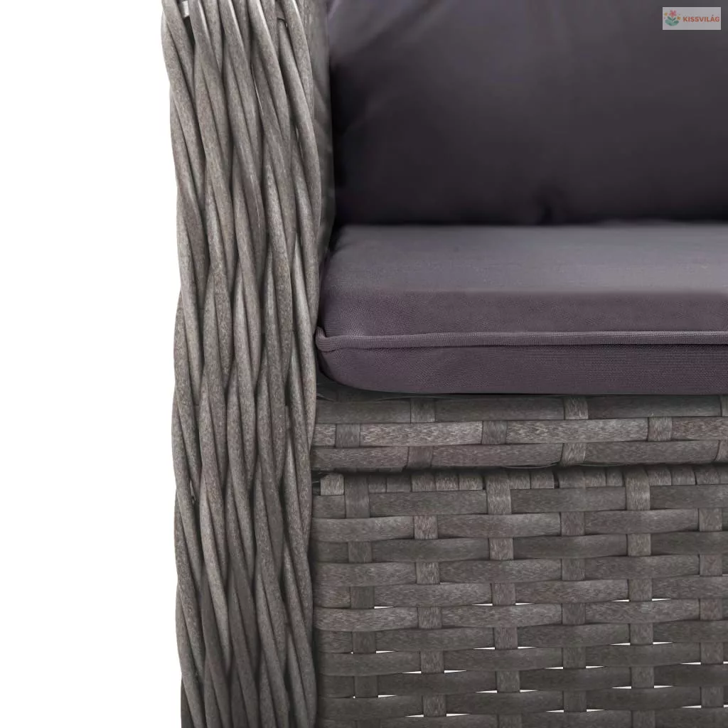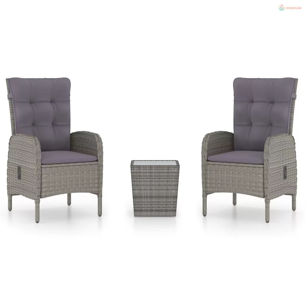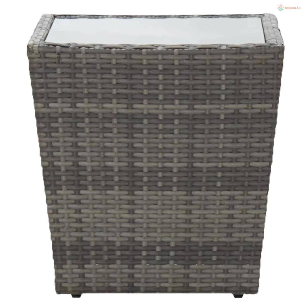 3 részes szürke polyrattan és üveg kerti bisztrószett