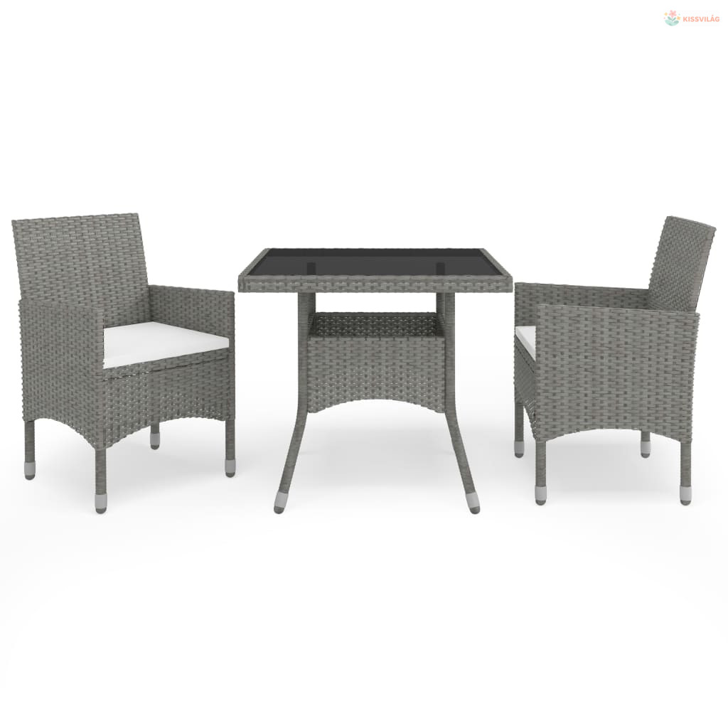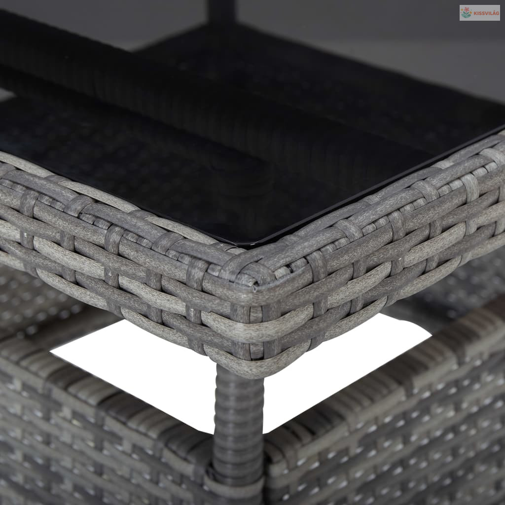 3 részes szürke polyrattan és üveg kerti étkezőgarnitúra