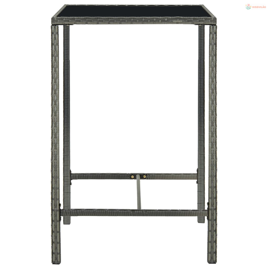 Ez az asztal vízálló polietilén rattan bevonatú porszórt acélvázzal rendelkezik, garantálva a több évnyi kültéri használatot. Továbbá az edzett üvegből készült asztallap könnyű tisztítást biztosít. A bárszékek polietilén rattan bevonatú erős acélvázzal rendelkeznek a stabilitás érdekében, ráadásul könnyen mozgathatók. A háttámla, a kartámasz és beépített lábtartó pedig tovább fokozzák a kényelmet.