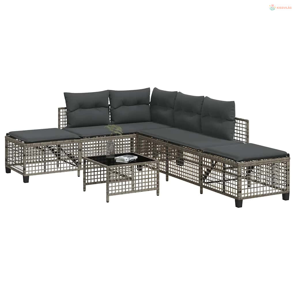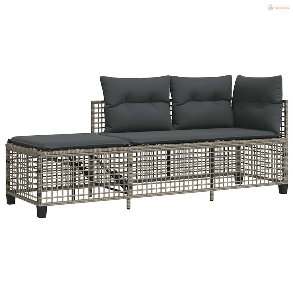 3 részes szürke polyrattan kerti sarokkanapészett párnákkal