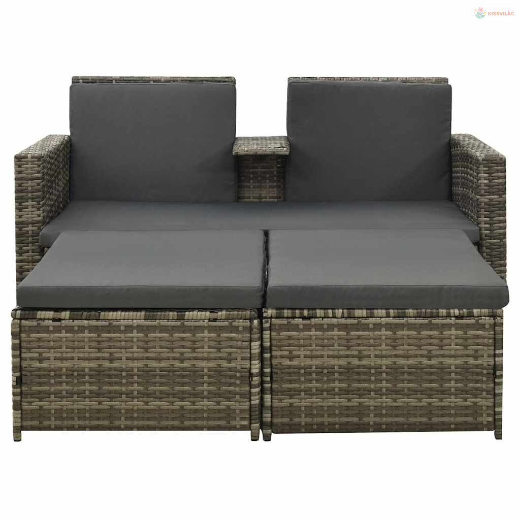 3 részes szürke polyrattan kerti ülőgarnitúra párnákkal