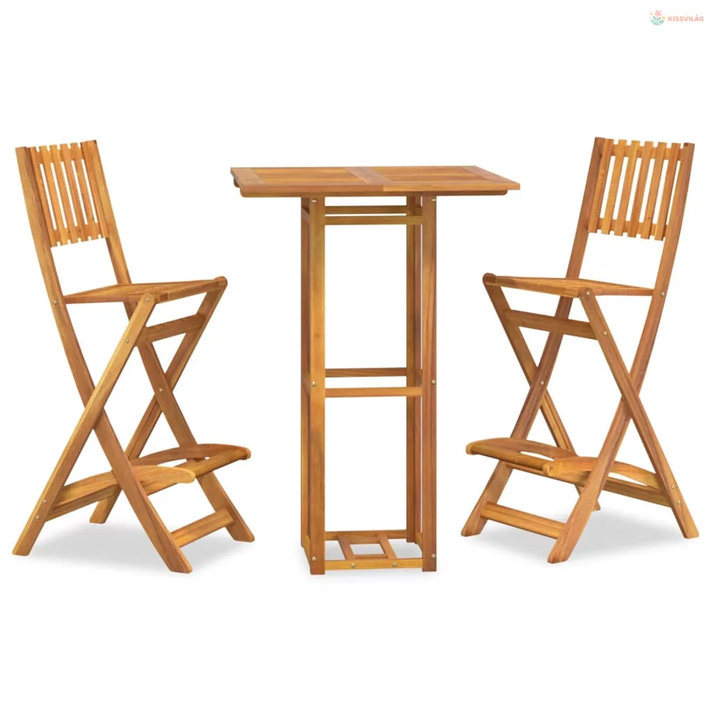3 részes tömör akácfa kültéri bárgarnitúra