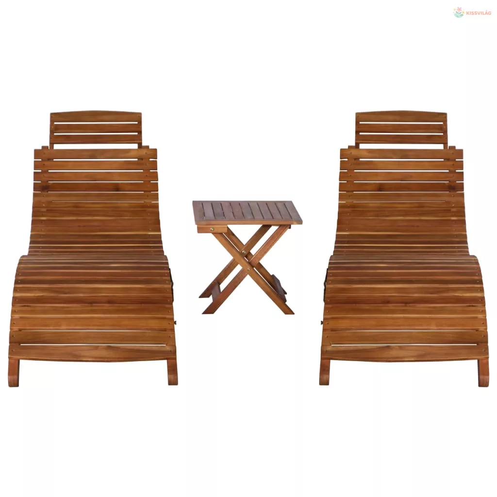 3-részes tömör akácfa napozóágy teázóasztallal