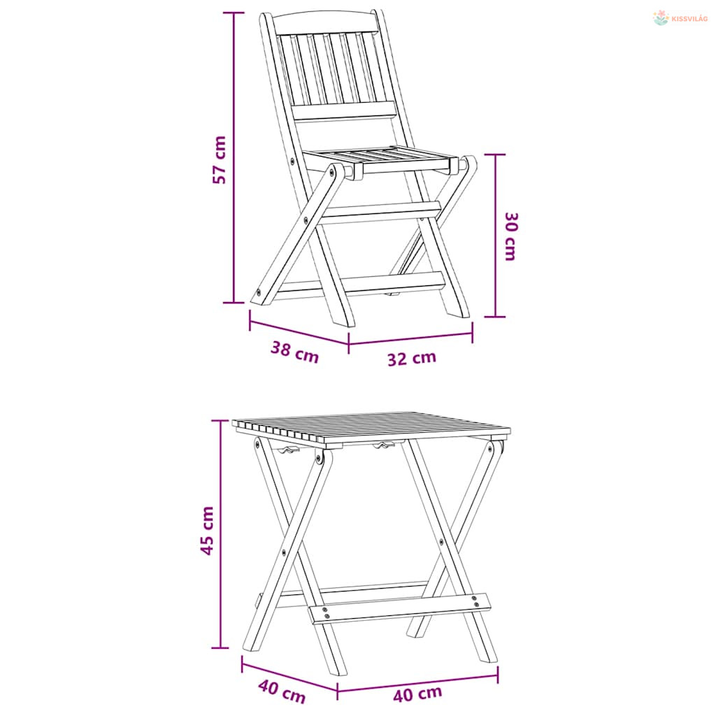 • Szék mérete: 32 x 38 x 57,5 cm (Szé x Mé x Ma)