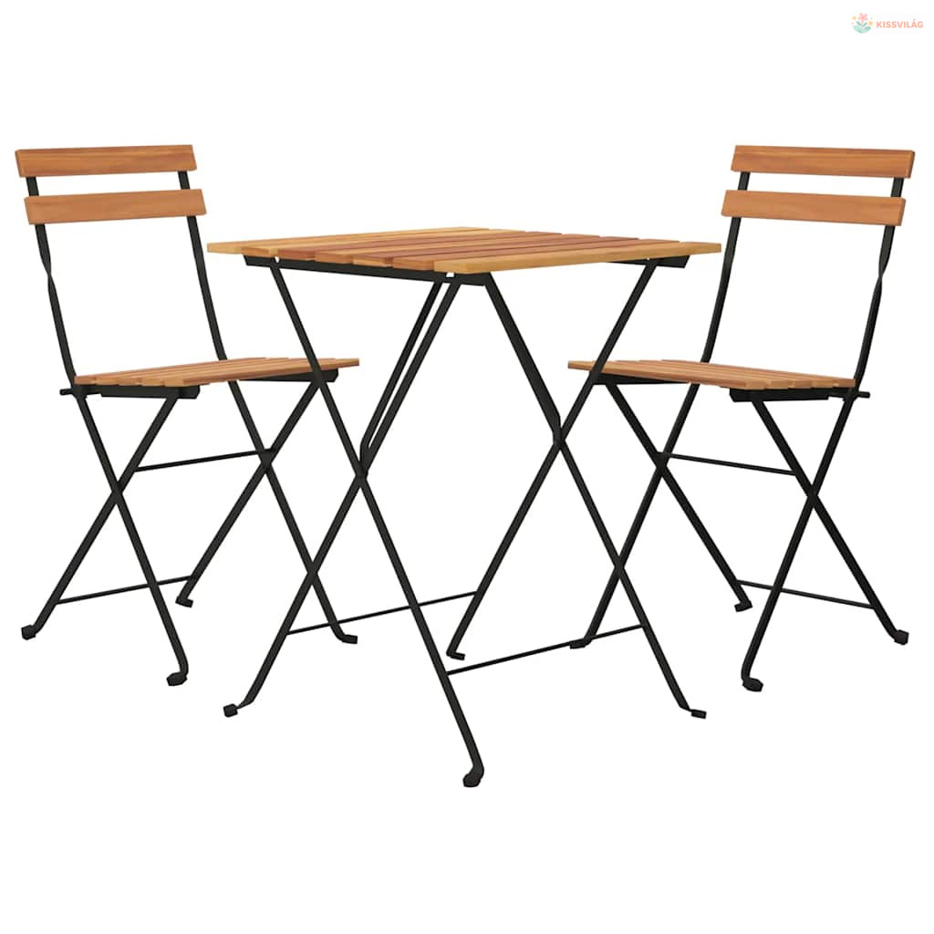 3 részes tömör tíkfa és acél összecsukható bisztrószett