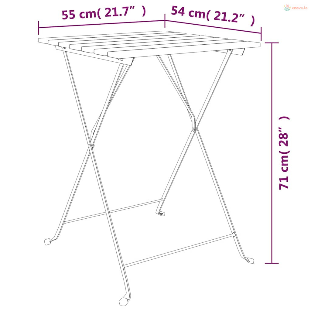 Ez az összecsukható, 3 részes bisztrószett kitűnő választás a kertben, erkélyen vagy udvaron történő étkezéshez vagy pihenéshez.