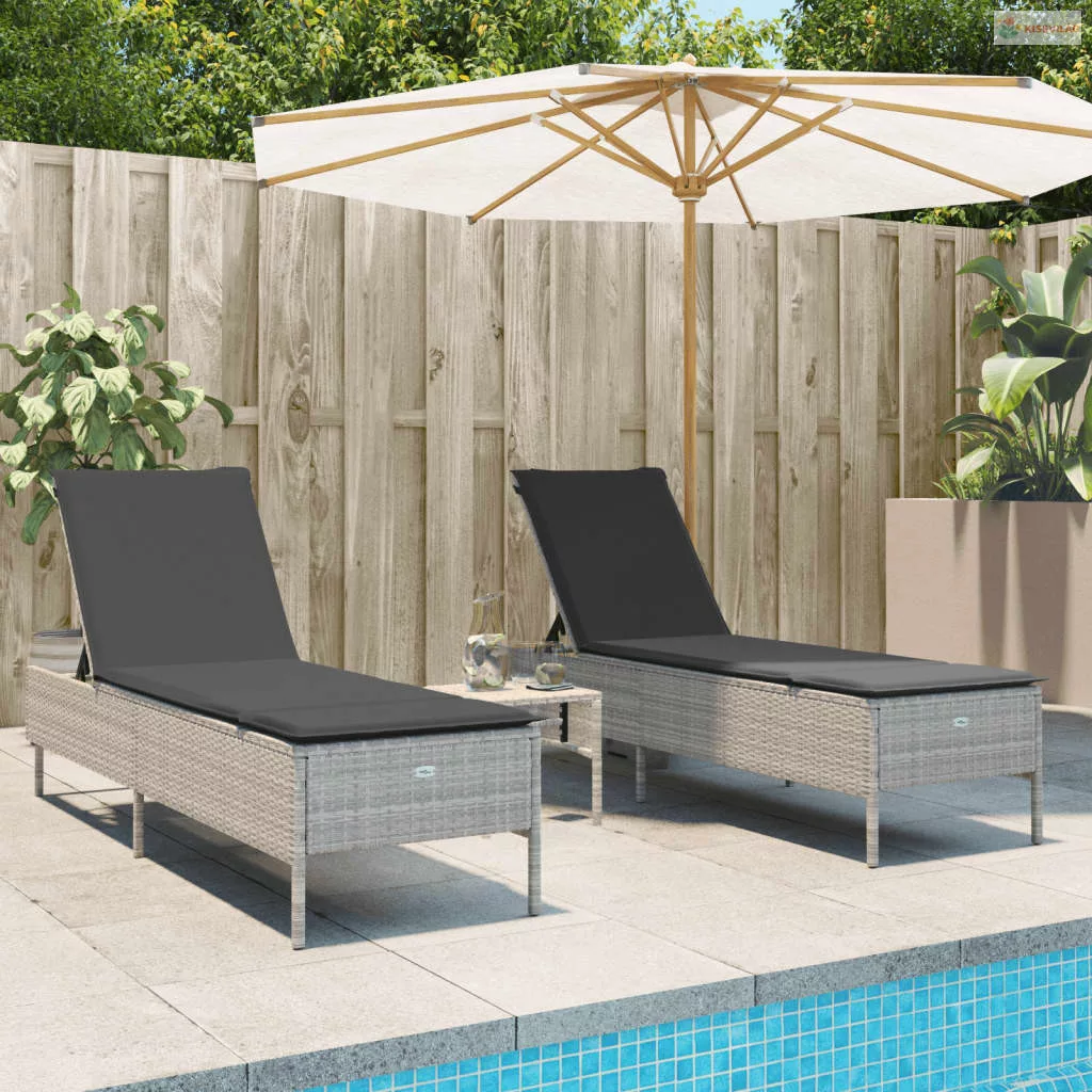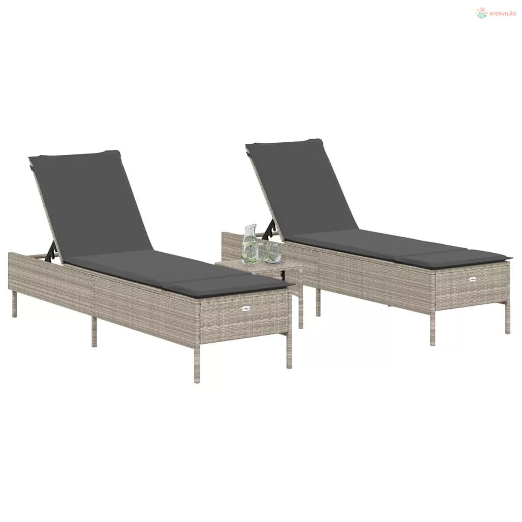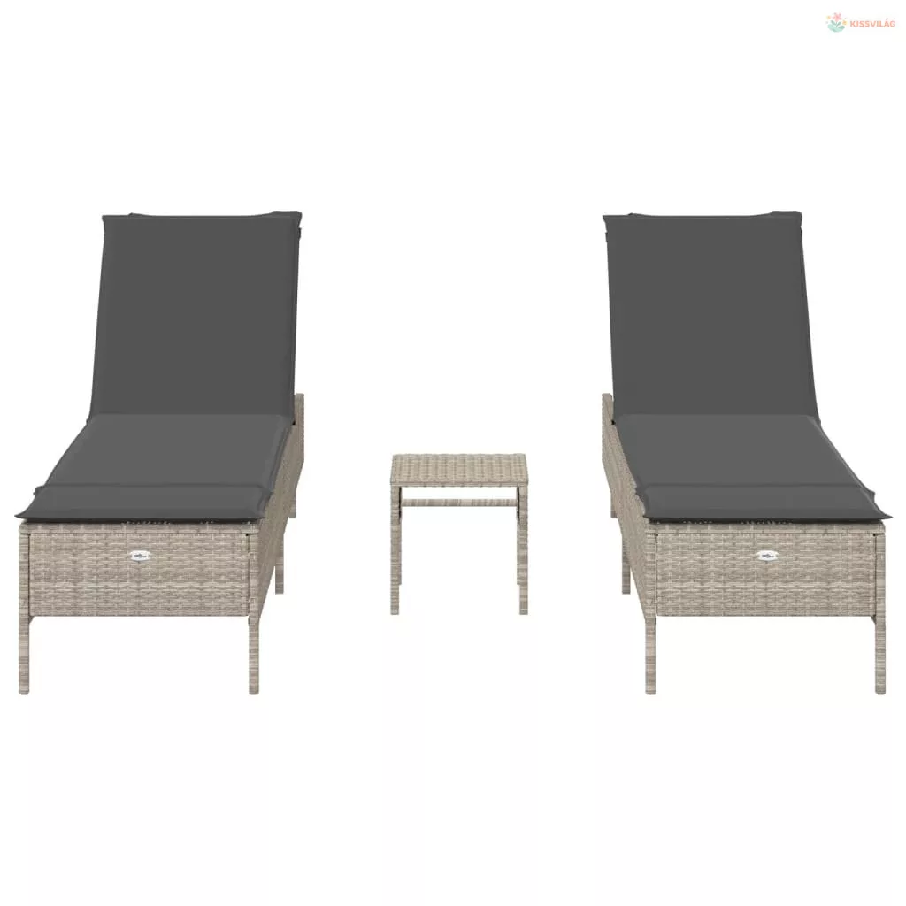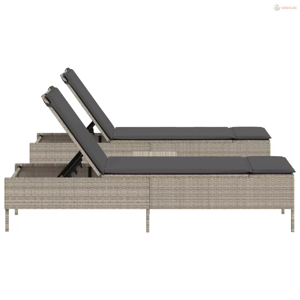 3 részes világosszürke polyrattan napozóágy szett párnával