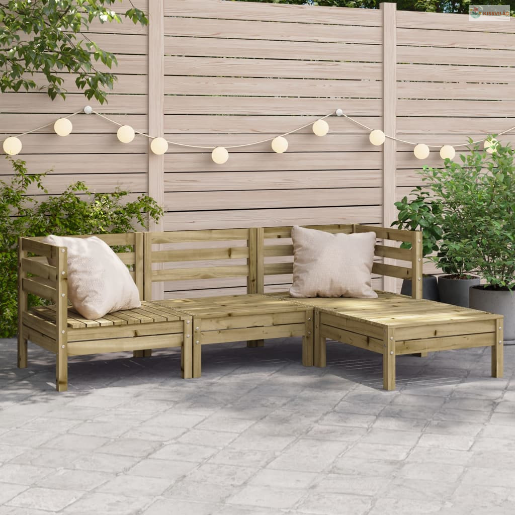 3 személyes impregnált fenyőfa kerti kanapé lábtartóval