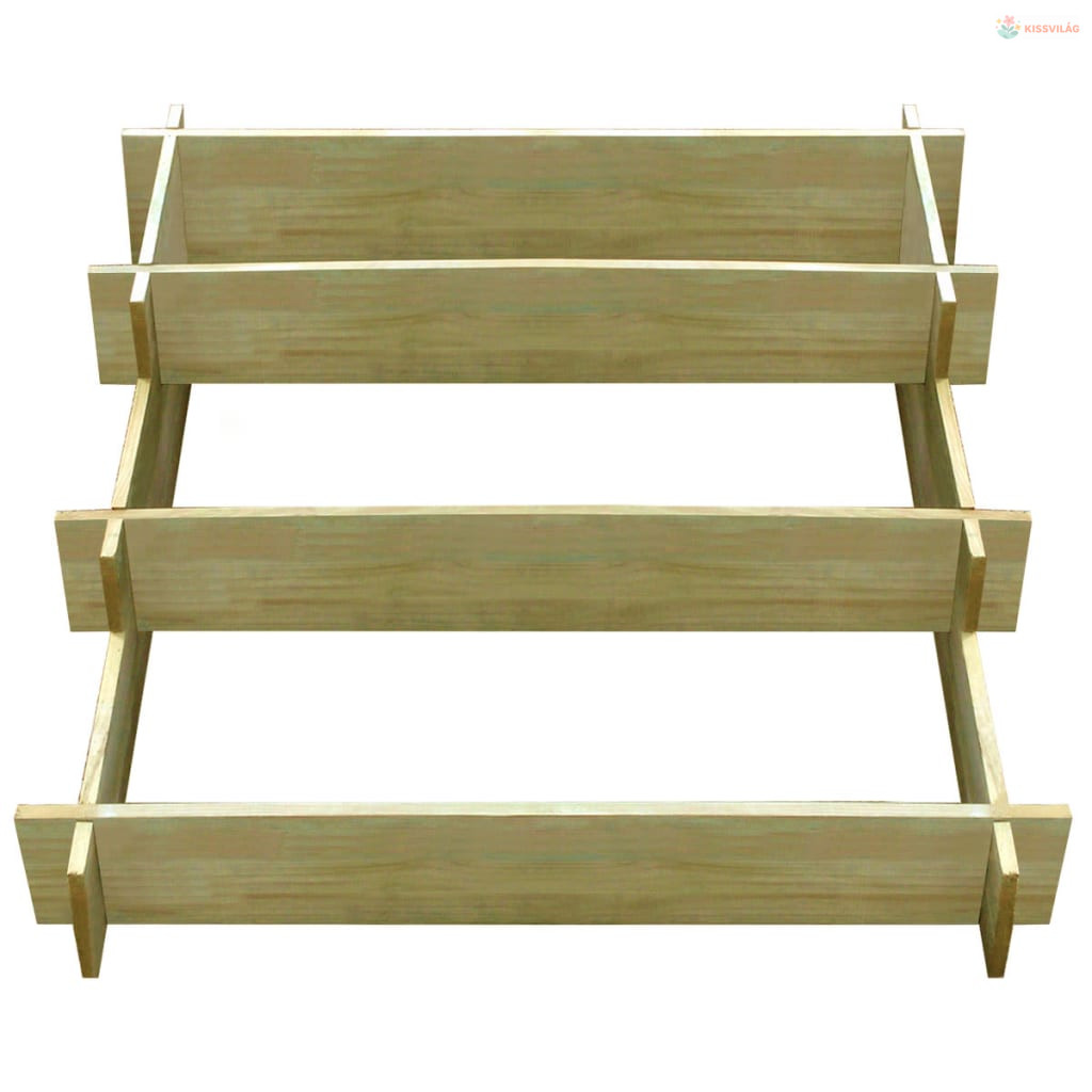 Zöld impregnált fenyőfából készült, így ez a fa virágágyás rendkívül szilárd, tartós és rothadásálló. Könnyen összeszerelhető.