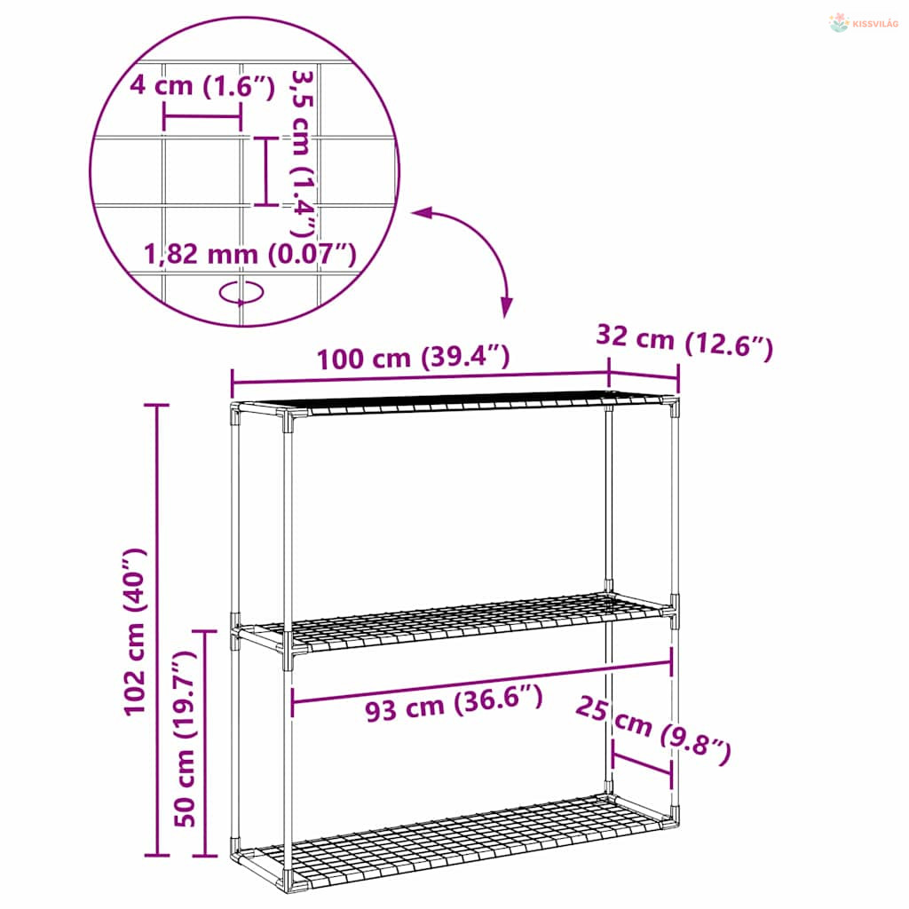 3-szintes növénypolc Fekete 100 x 32 x 102 cm Acél