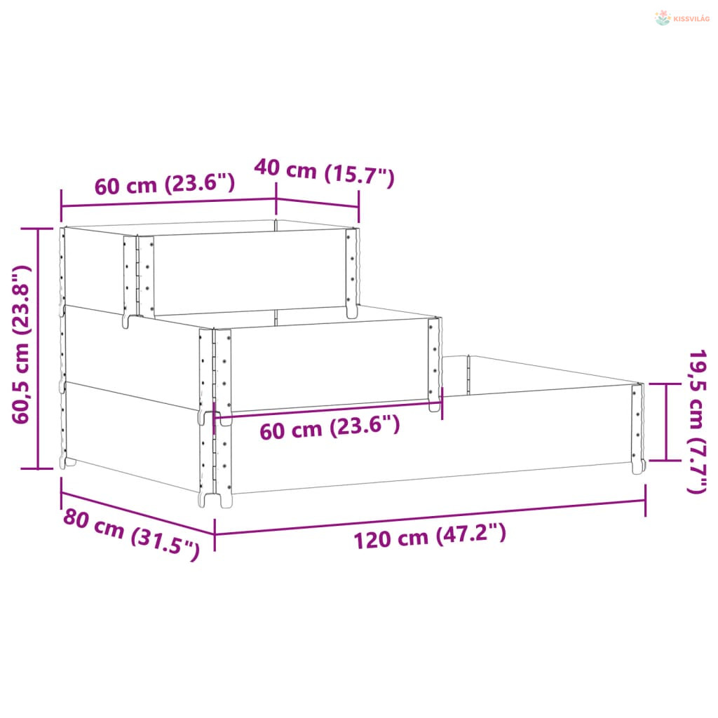 Ez a 3 szintes magaságyás ideális különféle virágok, zöldségek, vagy növények termesztésére. Tökéletes választás a barkácsolás szerelmeseinek kertjeik, erkélyeik, udvarjaik, teraszaik stb. díszítésére.