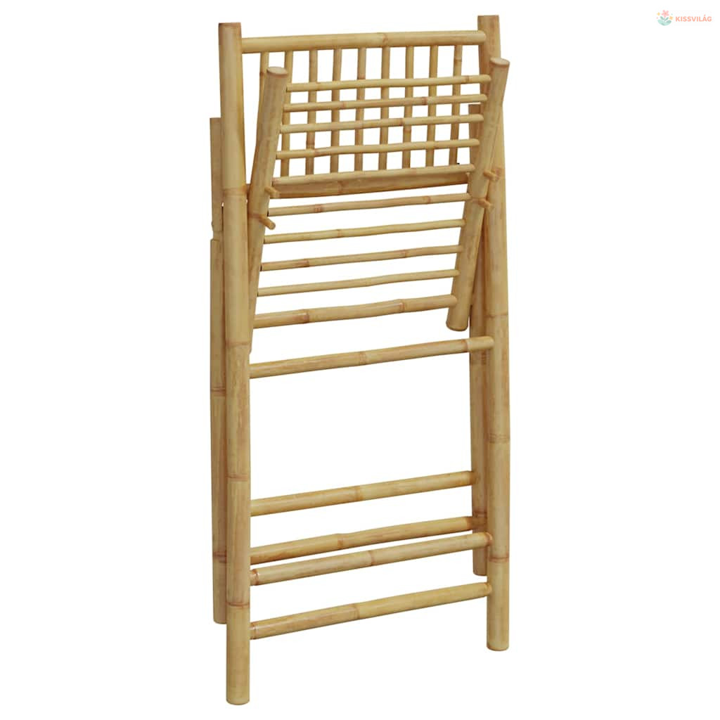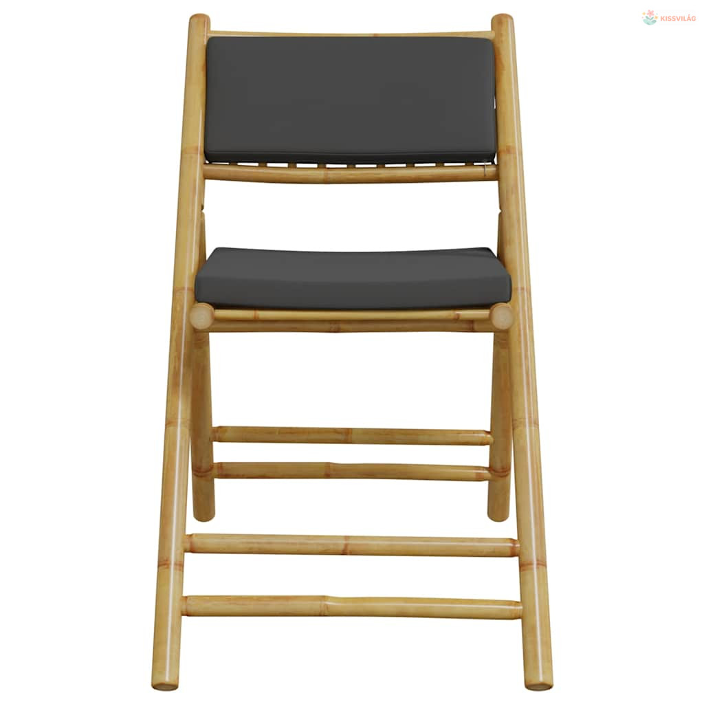 4 db bambusz összecsukható bisztrószék sötétszürke párnával