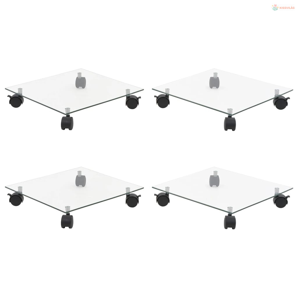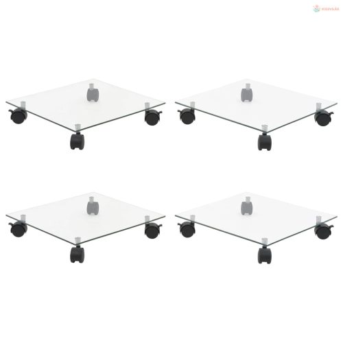 4 db négyzet alakú edzett üveg görgős növénytartó 35 x 35 cm