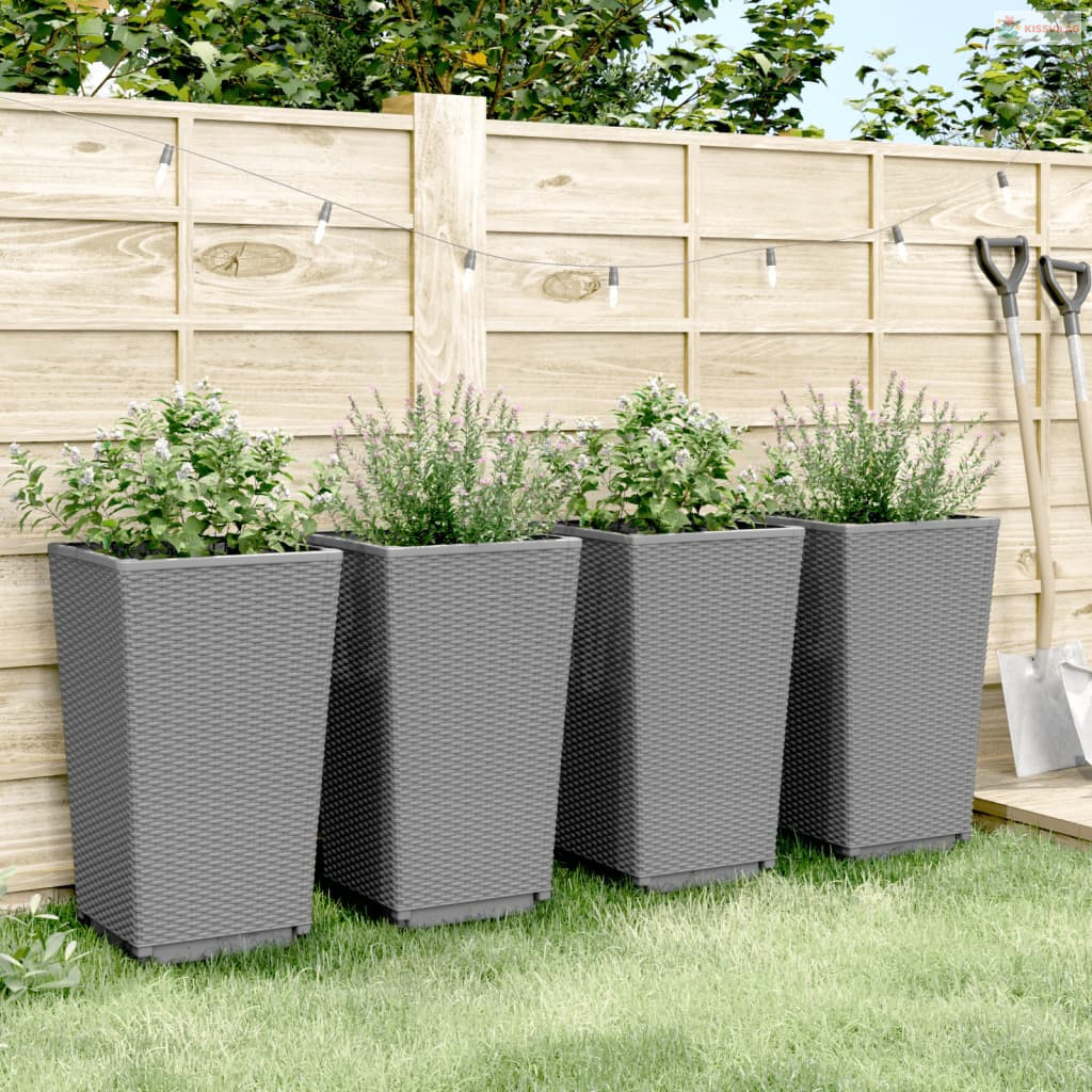 4 db világosszürke polipropilén kerti virágláda 32,5x32,5x57 cm