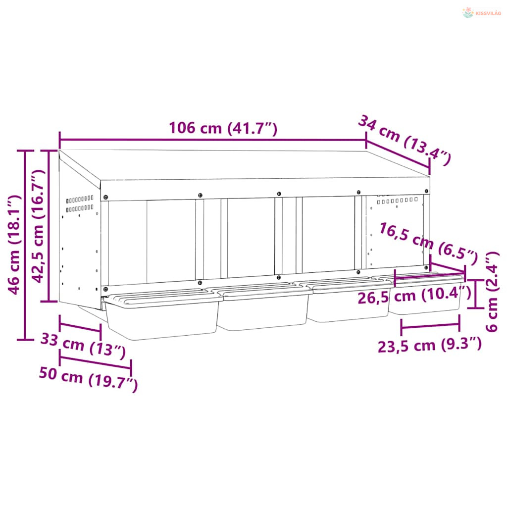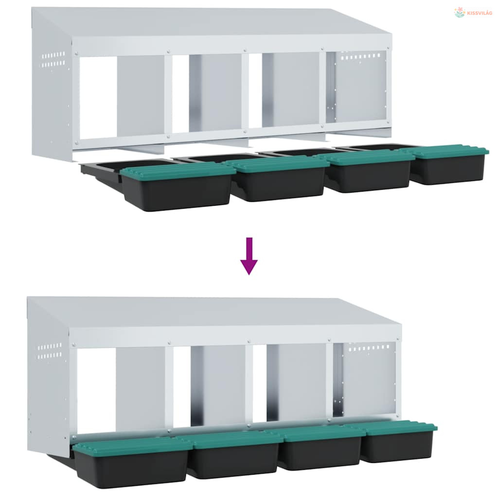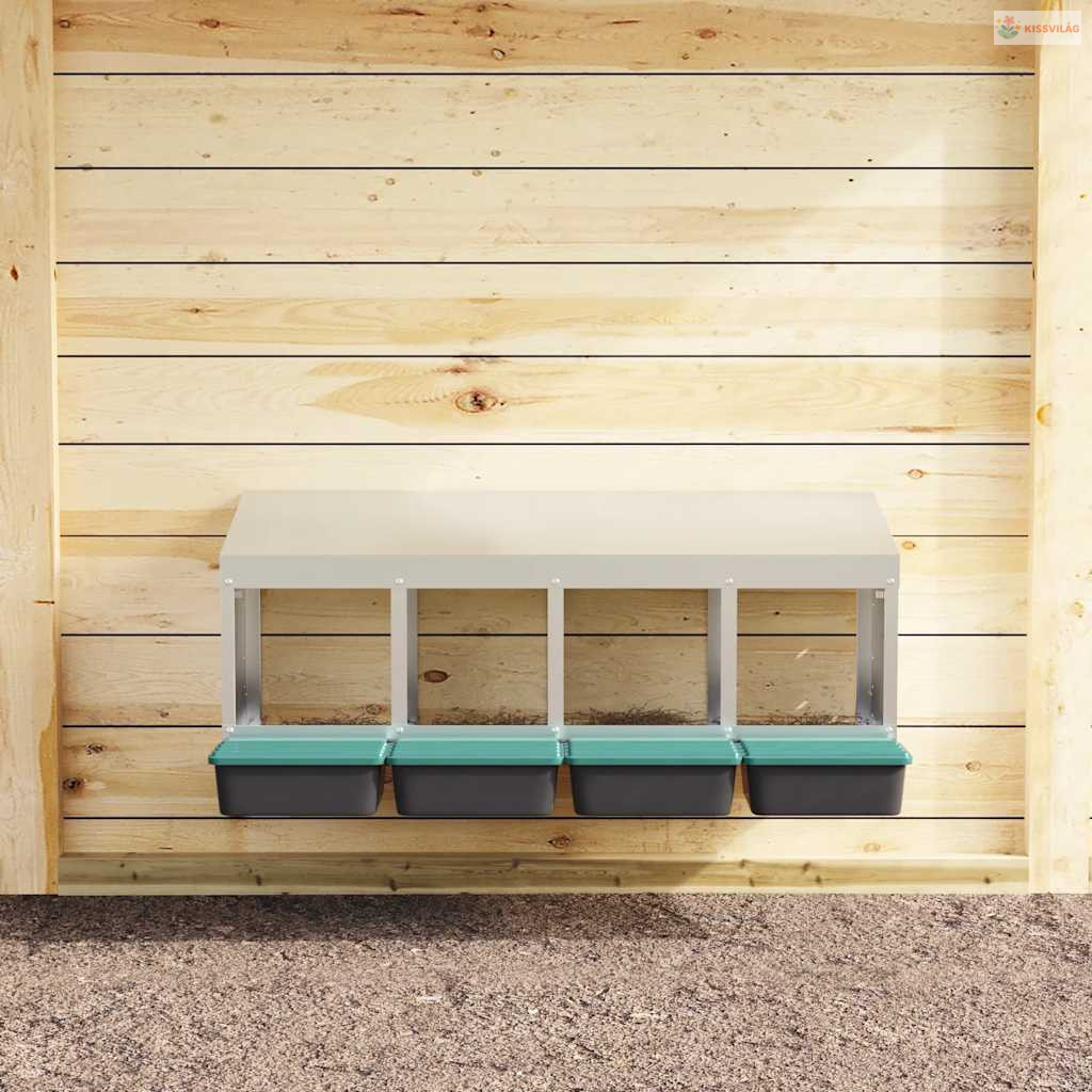 4 rekeszes, falra szerelhető, horganyzott acél csirkefészkelőláda