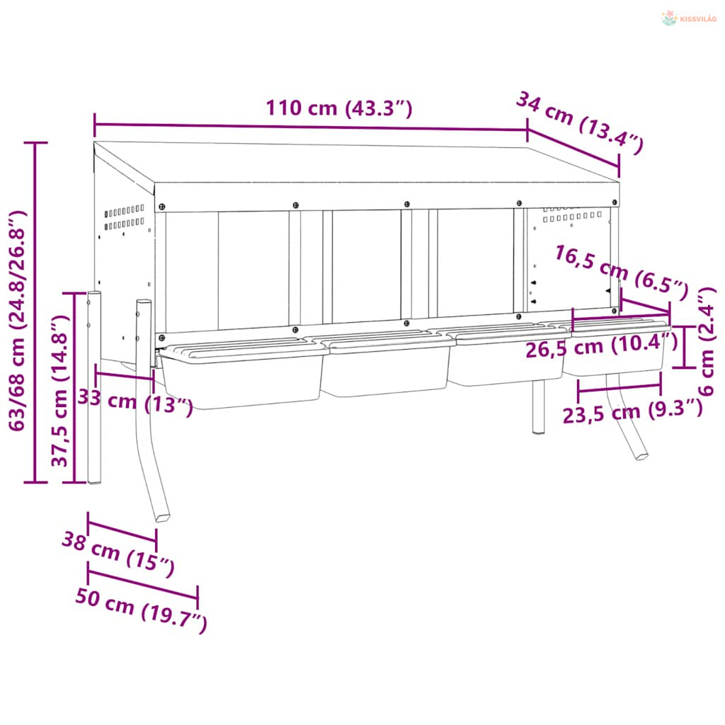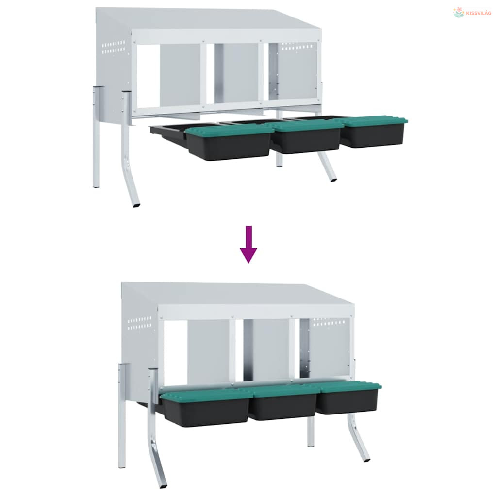 4 rekeszes horganyzott acél csirkefészkelőláda lábakkal