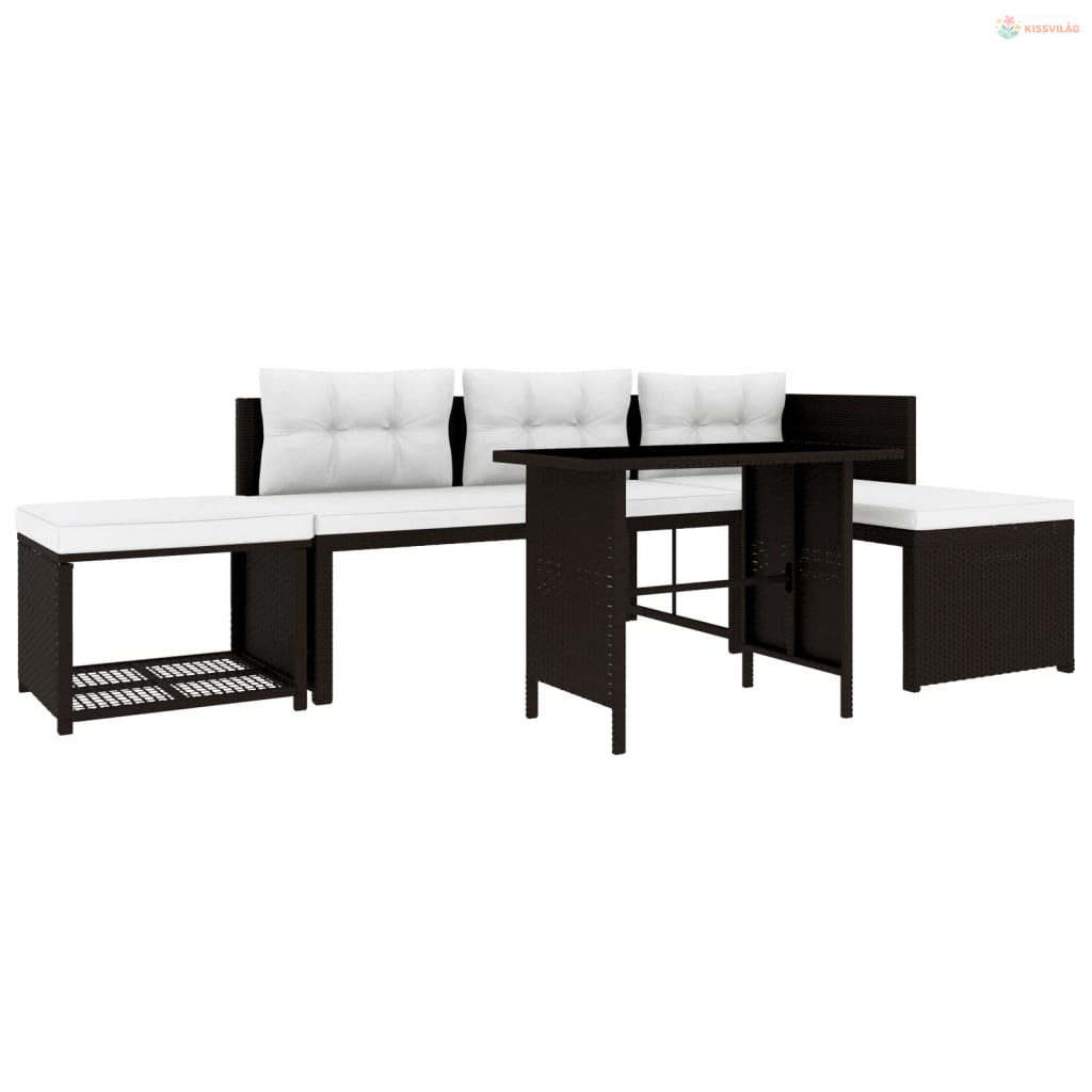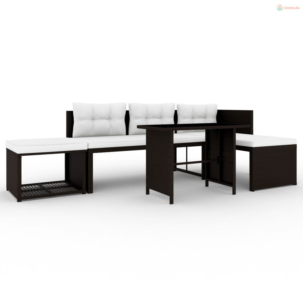 4 részes barna polyrattan kerti társalgó szett