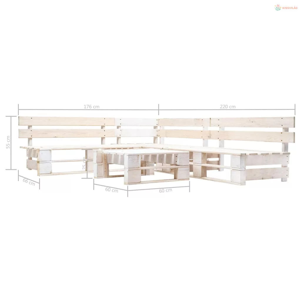 4 részes fehér fa kerti raklap-ülőgarnitúra
