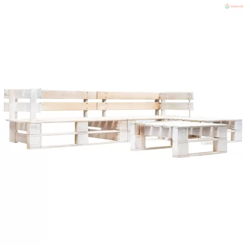 4 részes fehér fa kerti raklap-ülőgarnitúra