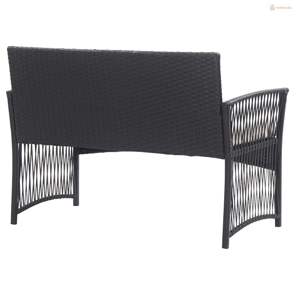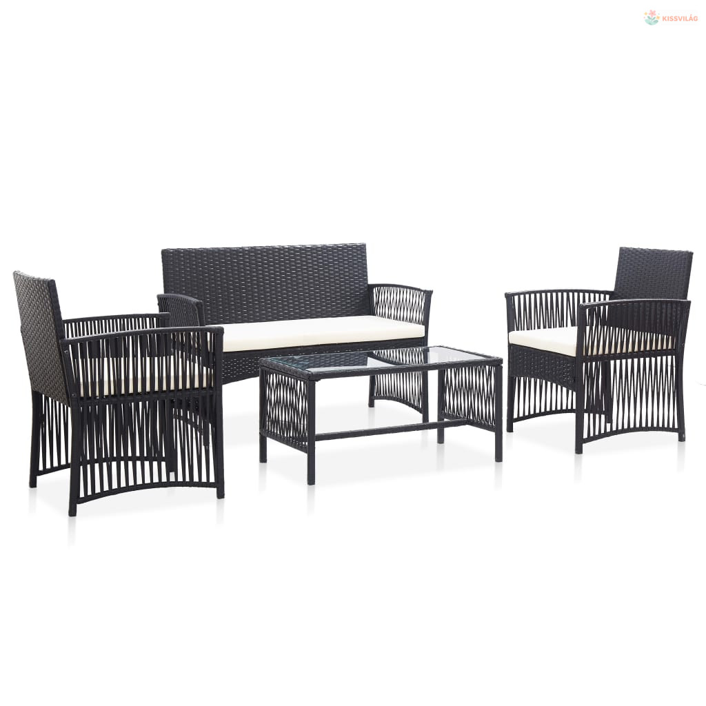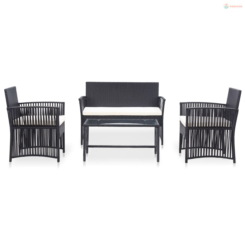 4-részes fekete kerti polyrattan bútorszett párnákkal