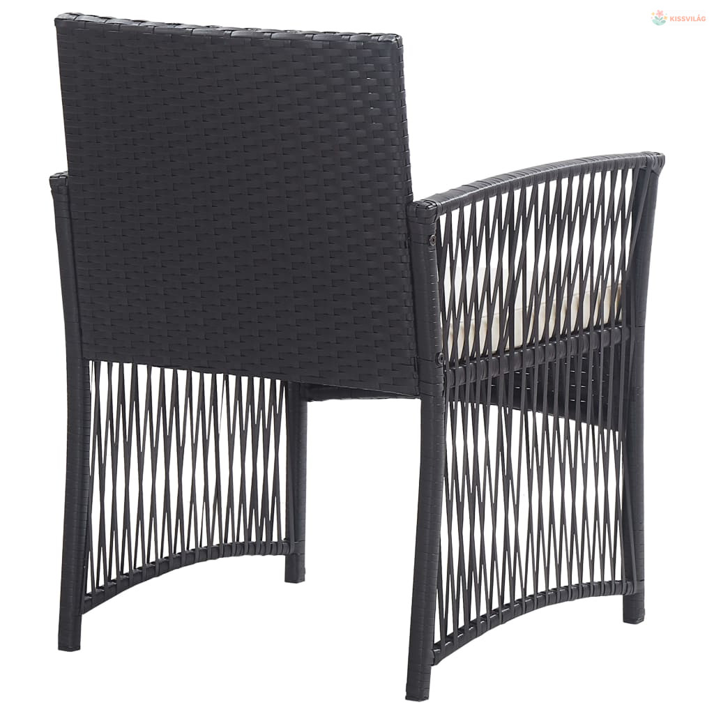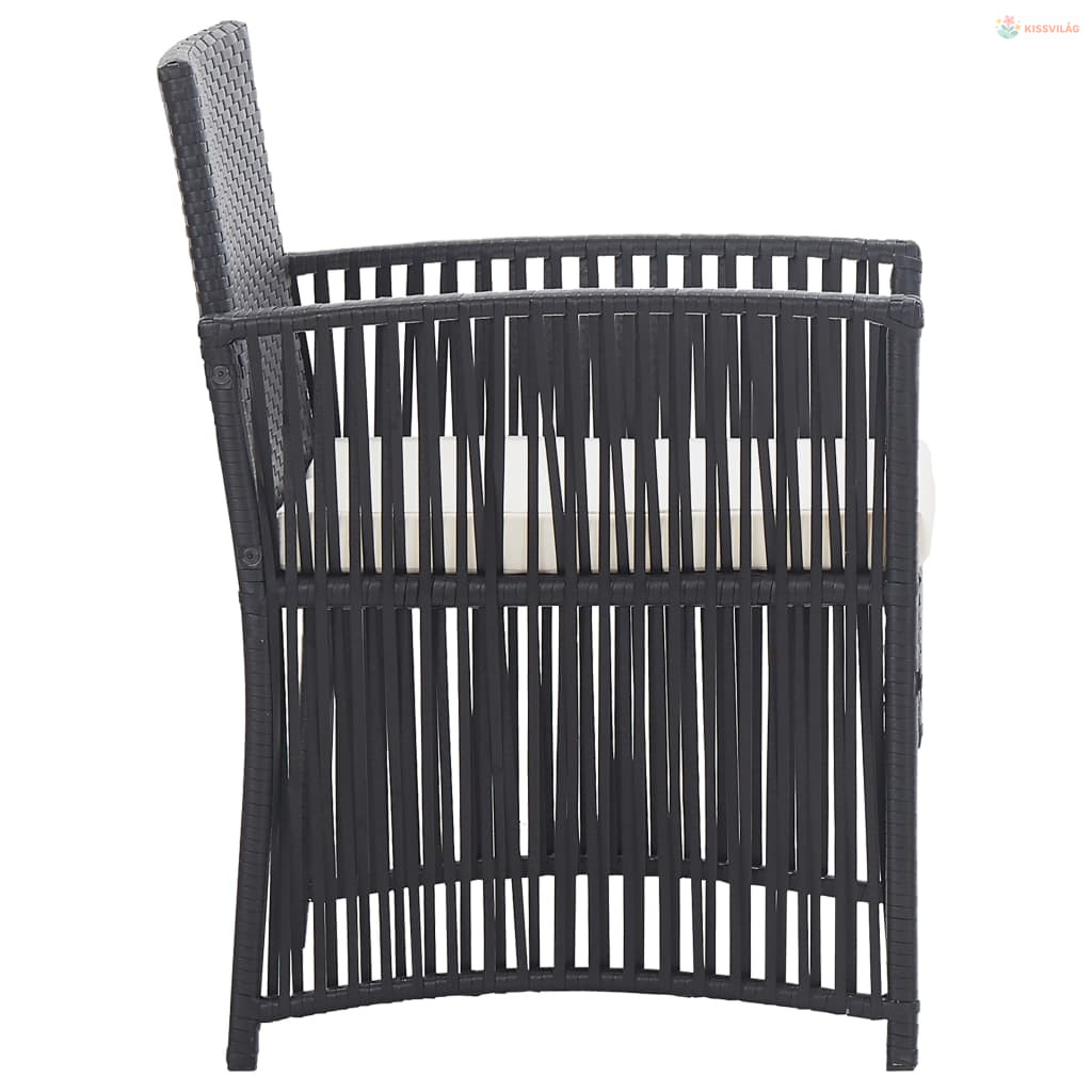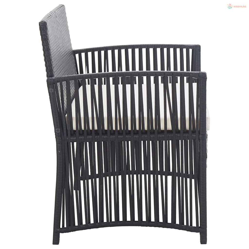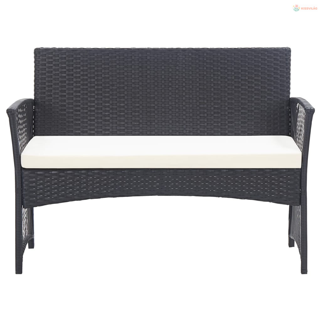 4-részes fekete kerti polyrattan bútorszett párnákkal