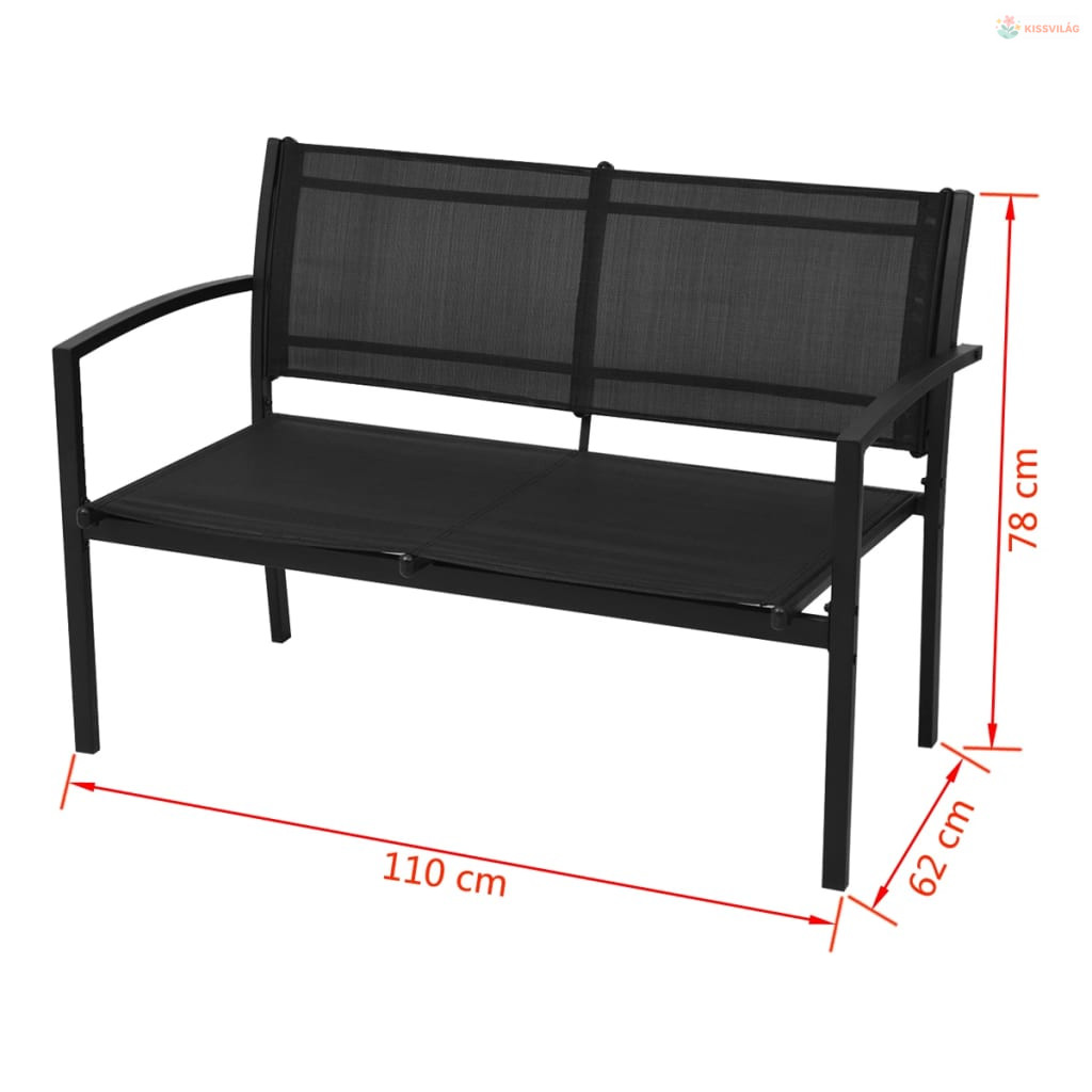 • A szett 2 egyszemélyes széket, 1 padot és 1 dohányzóasztalt tartalmaz