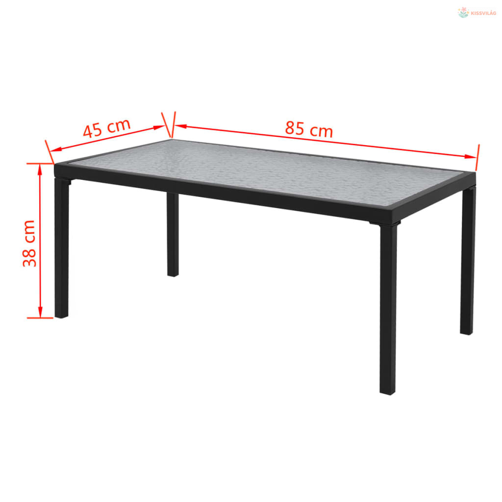 • Dohányzóasztal anyaga: porszórással felületkezelt acélváz + edzett üveg asztallap