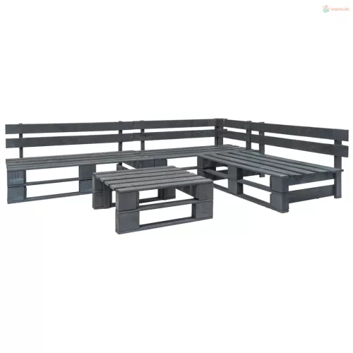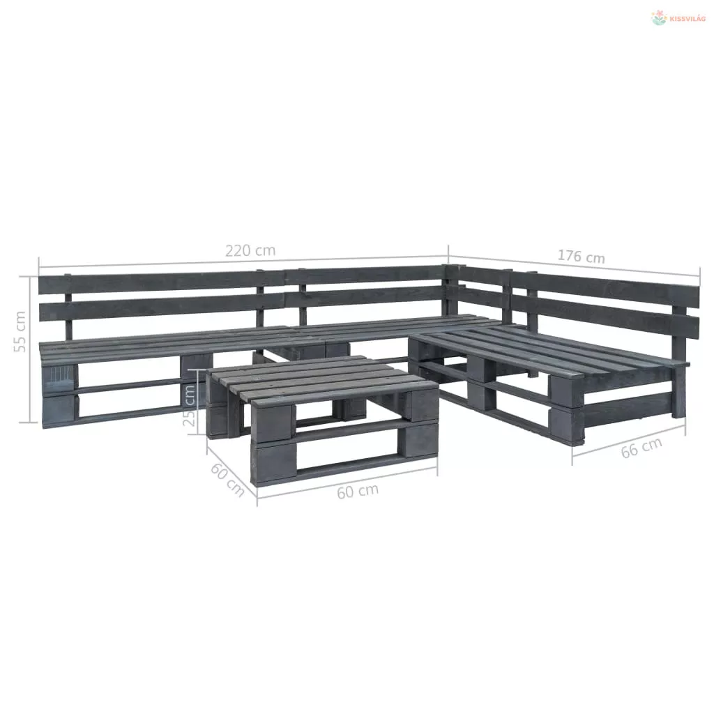 4 részes szürke fa kerti raklap-ülőgarnitúra