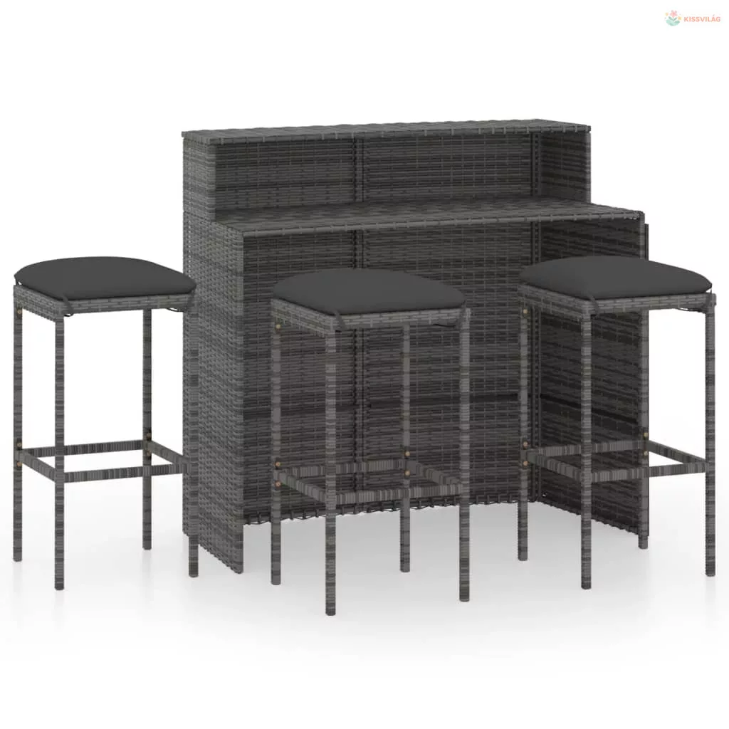 4 részes szürke kerti bárszett párnákkal
