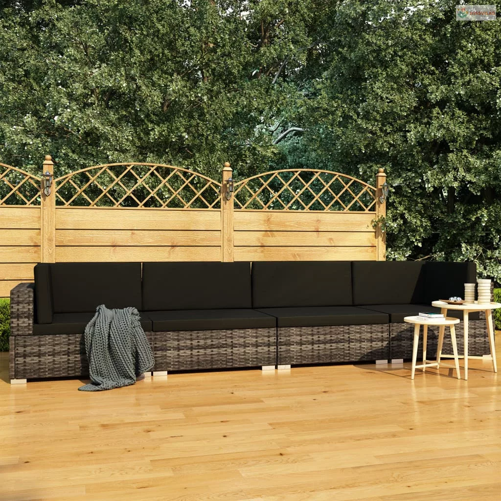 4 részes szürke polyrattan kerti kanapészett párnákkal