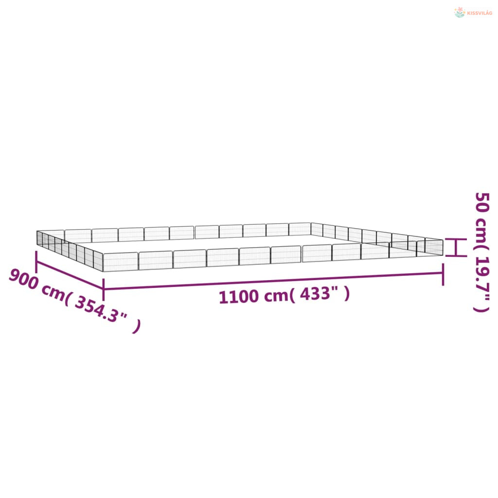 40-paneles fekete porszórt acél kutyakennel 100 x 50 cm