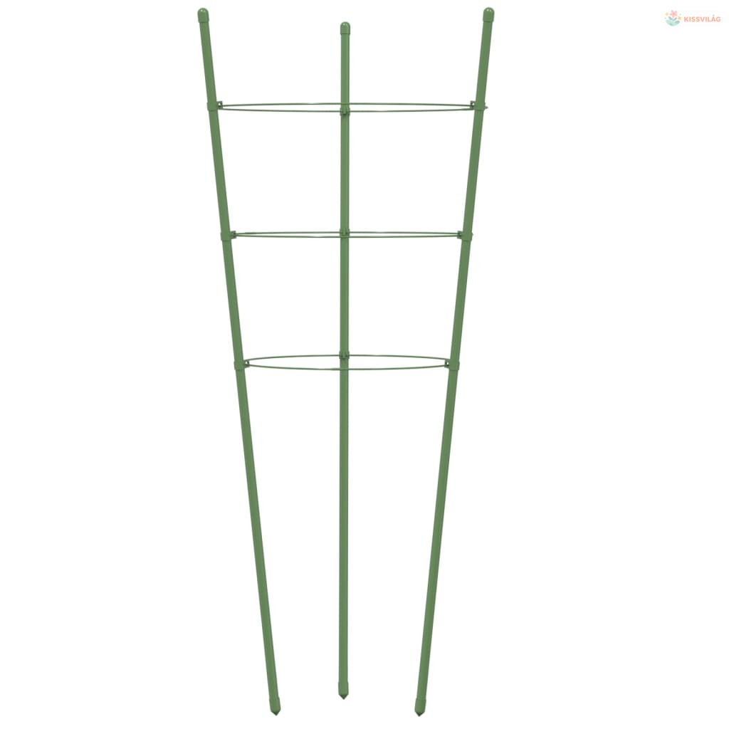 5 db zöld acél kerti növénytámasz 3 gyűrűvel 45 cm