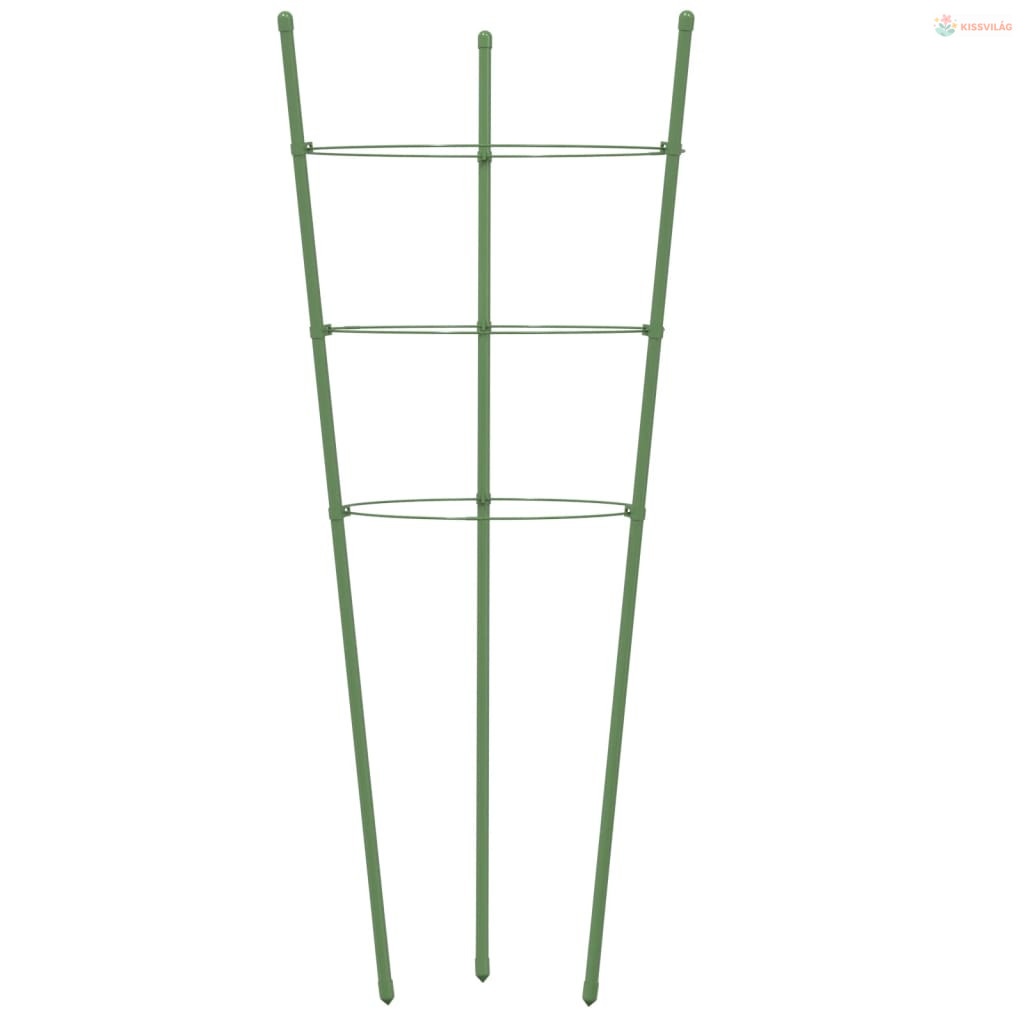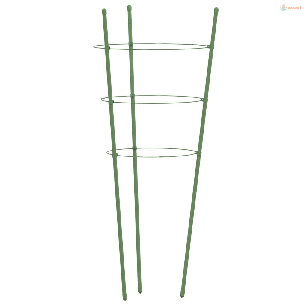 5 db zöld acél kerti növénytámasz 3 gyűrűvel 60 cm
