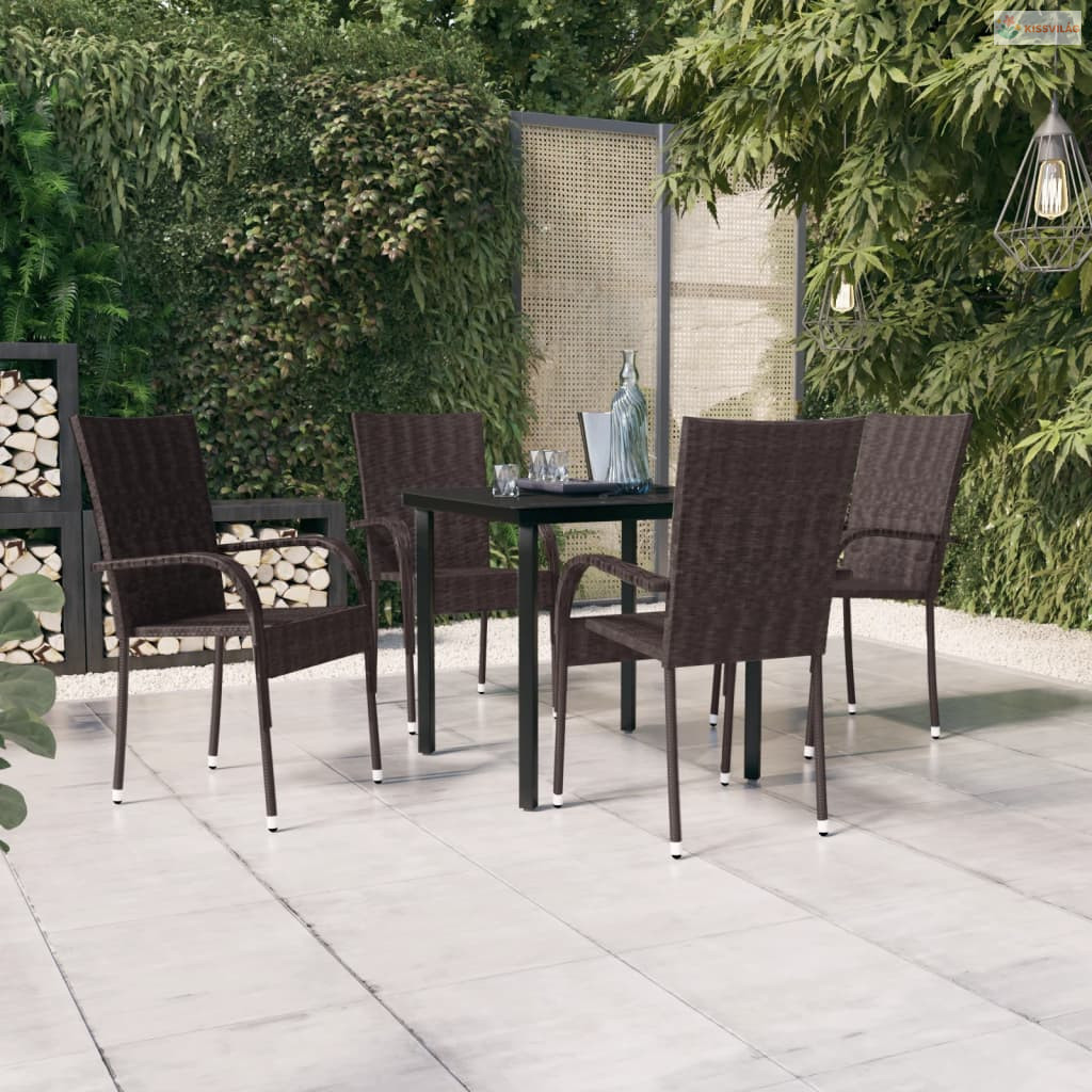 Az asztal és a székek porszórt acélvázzal rendelkeznek, így erős szerkezetűek és stabilok, valamint alkalmasak mindennapos kültéri használatra. A vízálló PE-rattannak köszönhetően a székek könnyen tisztíthatók és alkalmasak mindennapos használatra. Továbbá a sima üveg asztallap egy nedves ruhával könnyen tisztítható, és tökéletes ételek, italok és egyéb dísztárgyak elhelyezésére.