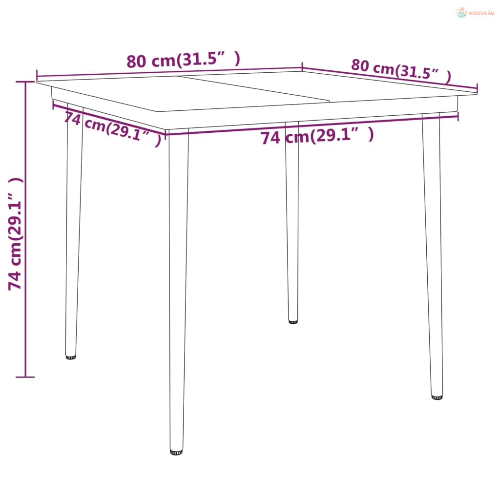 • Asztal mérete: 80 x 80 x 74 cm (Ho x Szé x Ma)