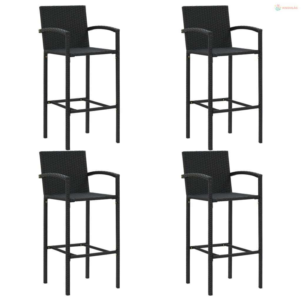 5 részes fekete polyrattan kerti bárszett