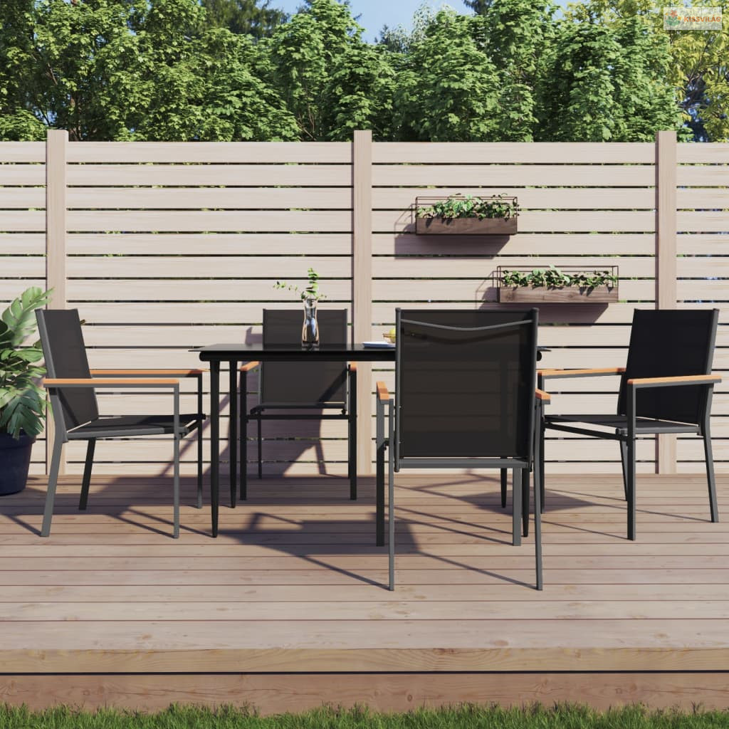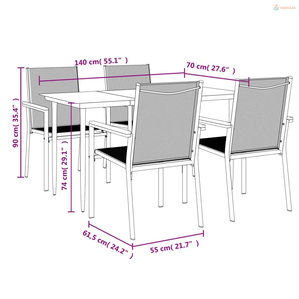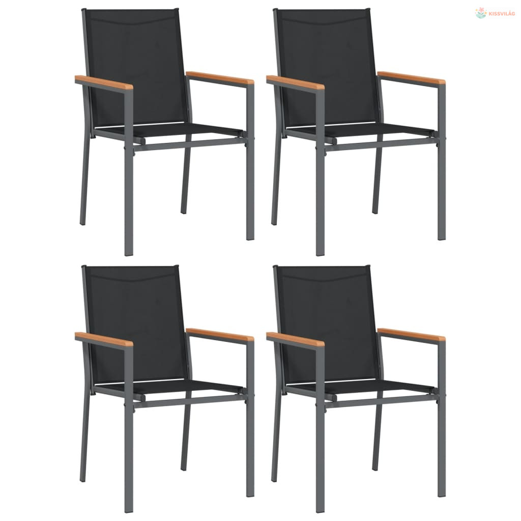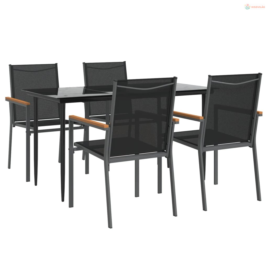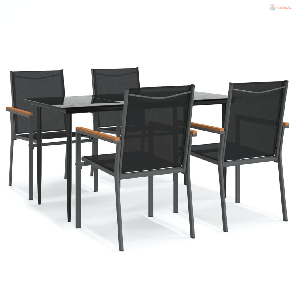 5 részes fekete textilén és acél kerti étkezőgarnitúra