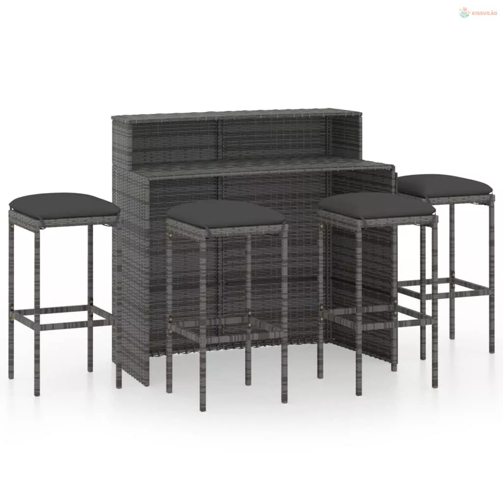 5 részes szürke kerti bárszett párnákkal