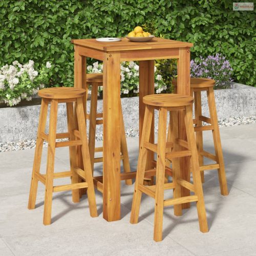 • Tömör akácfa: A tömör akácfa egy gyönyörű, természetes anyag. Az akácfa egy trópusi keményfa, amely sűrű erezetű, masszív és tartós. Ez a tömör akácfából készült bárgarnitúra bel- és kültéri használatra egyaránt alkalmas.