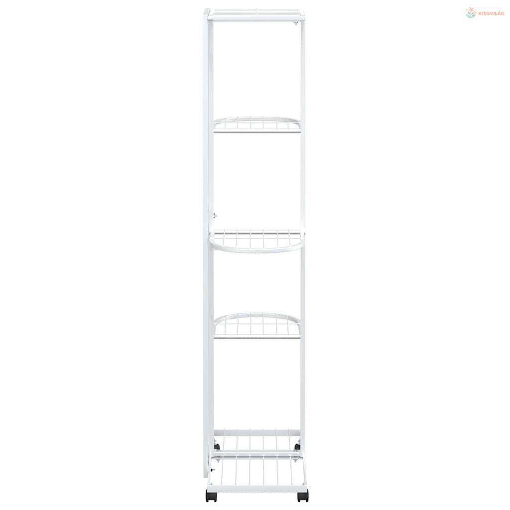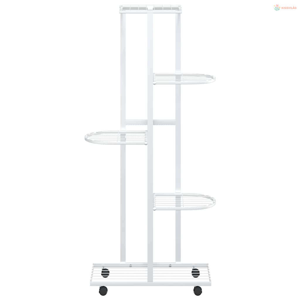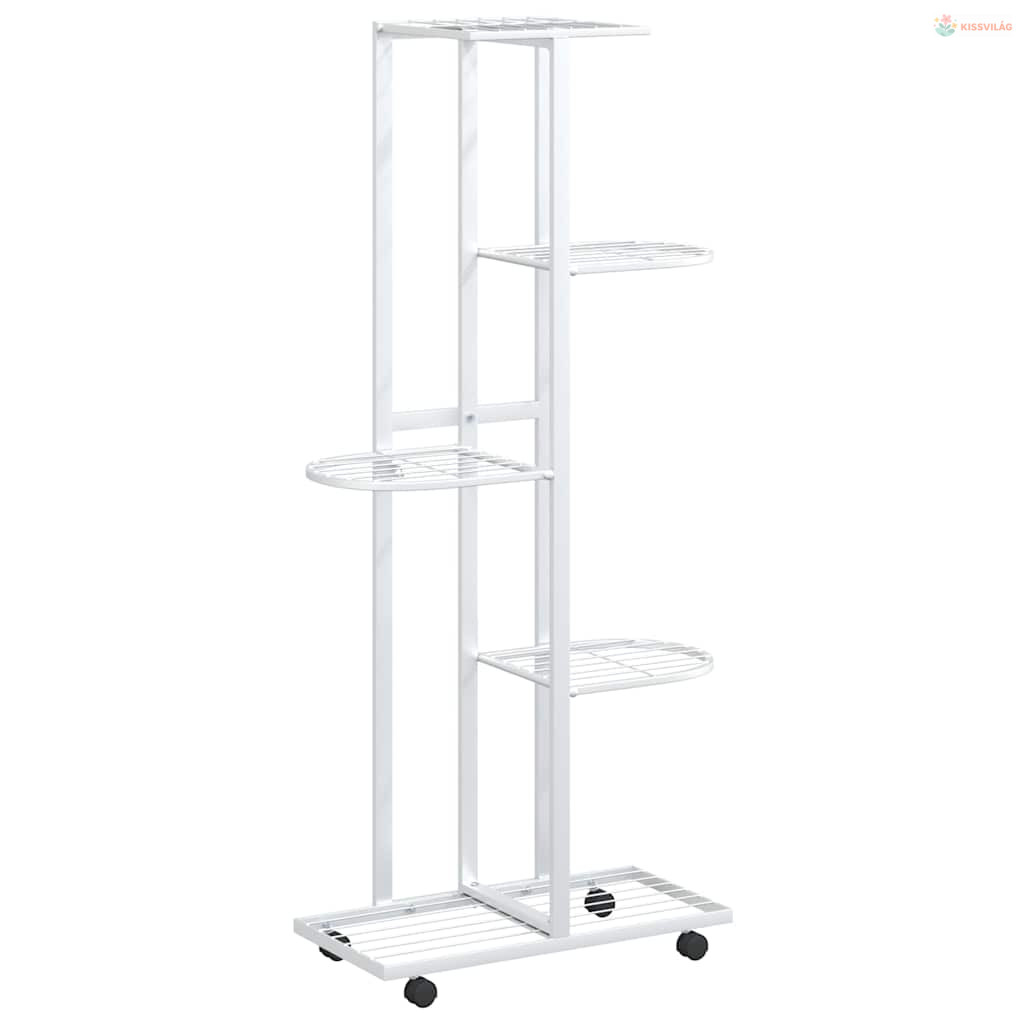 5 szintes fehér vas virágtartó állvány kerekekkel 44x23x100 cm