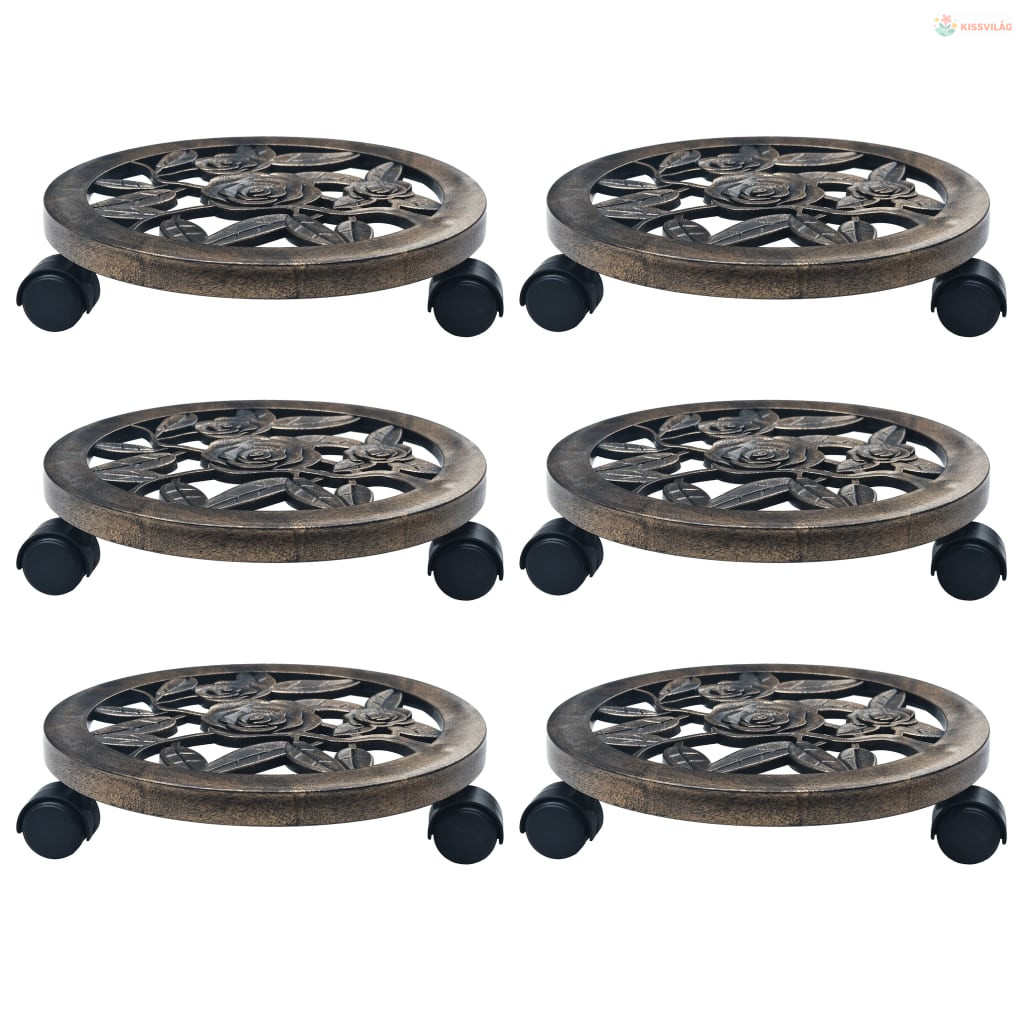 6 db bronzszínű gurulós műanyag virágtartó 30 cm