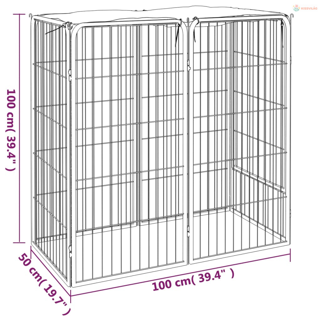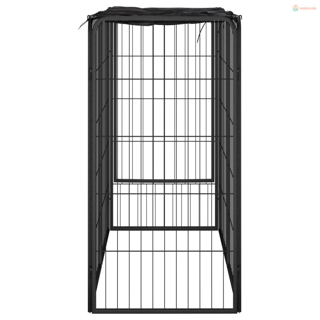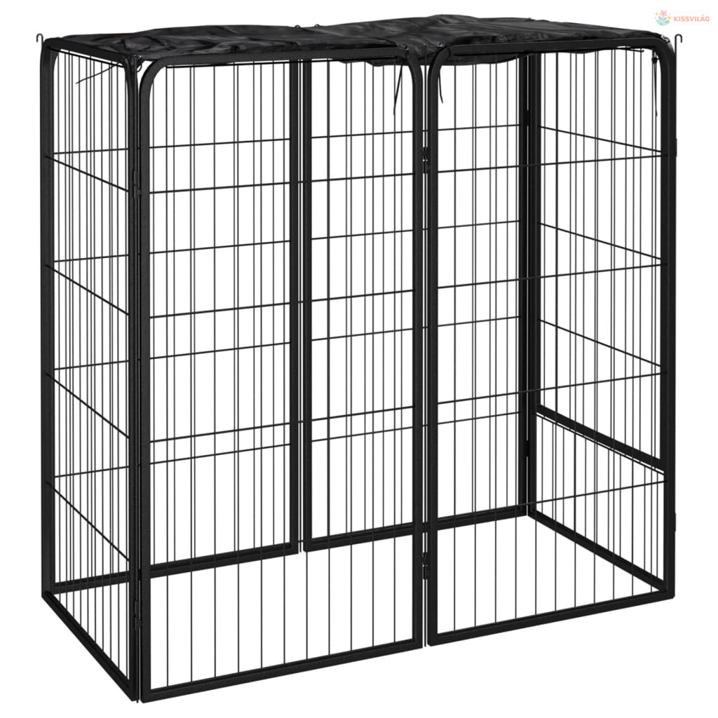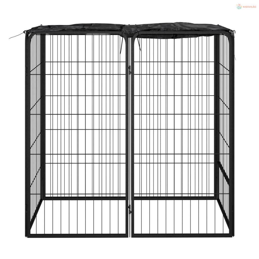 6-paneles fekete porszórt acél kutyakernel 50 x 100 cm