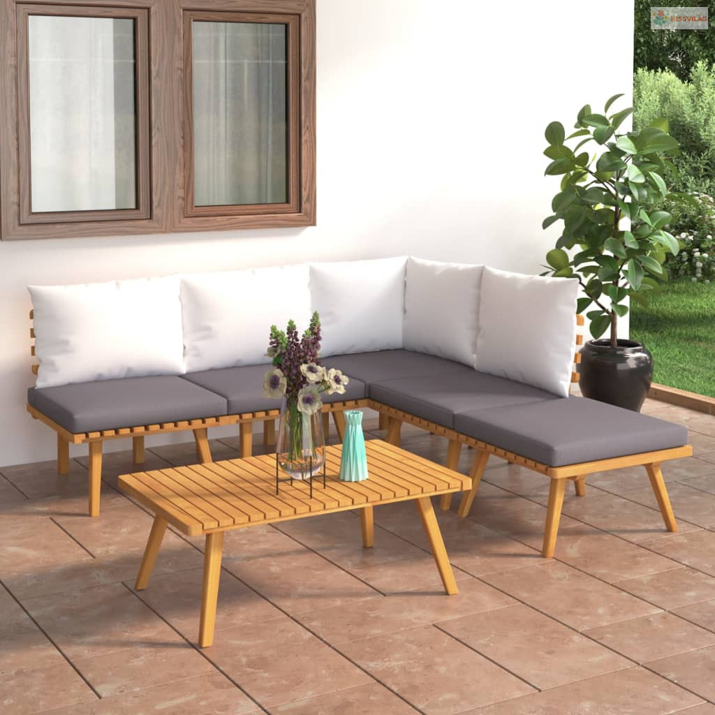6 részes tömör akácfa kerti ülőgarnitúra párnákkal