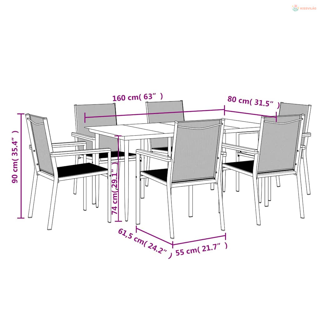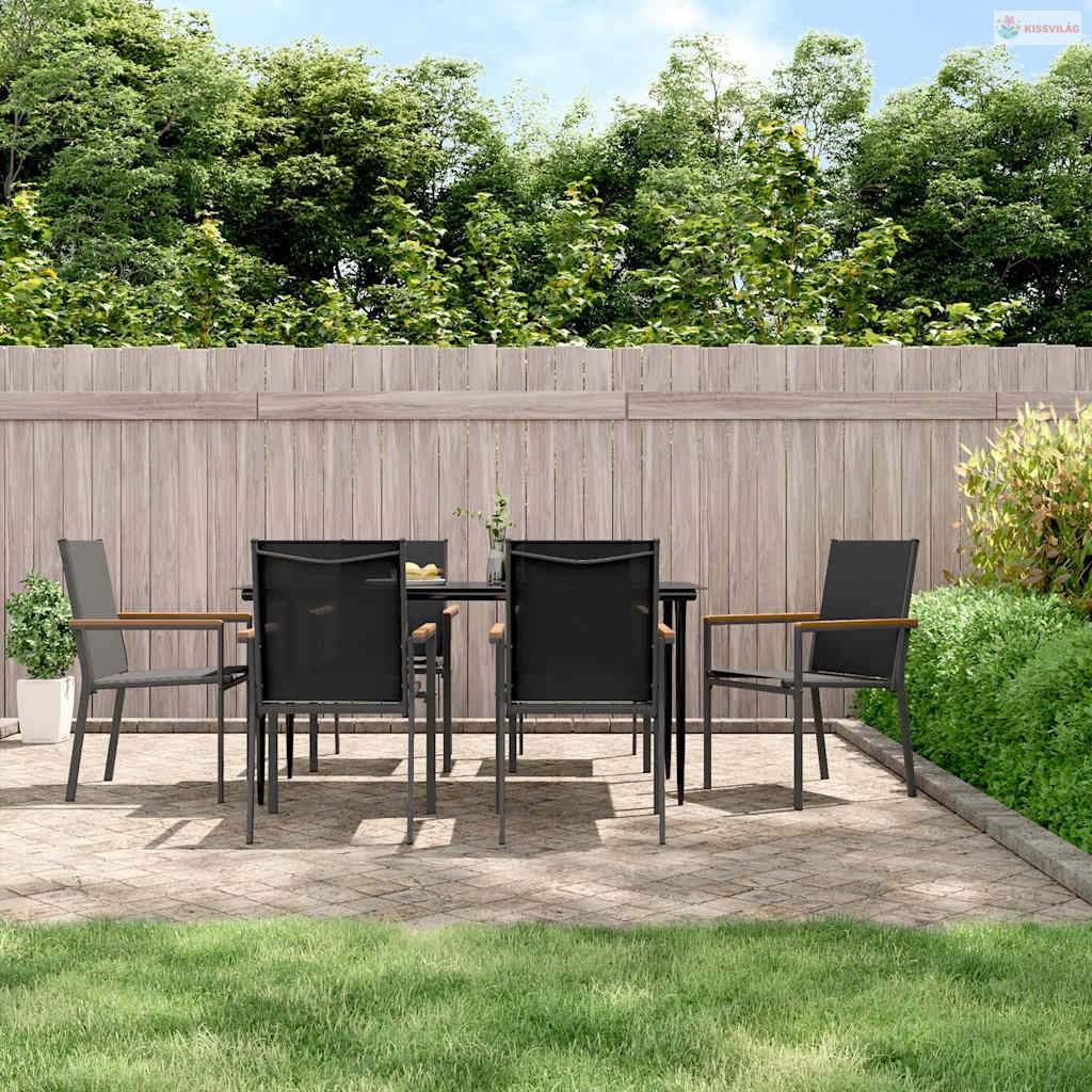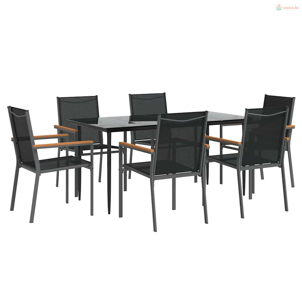 7 részes fekete textilén és acél kerti pihenőgarnitúra